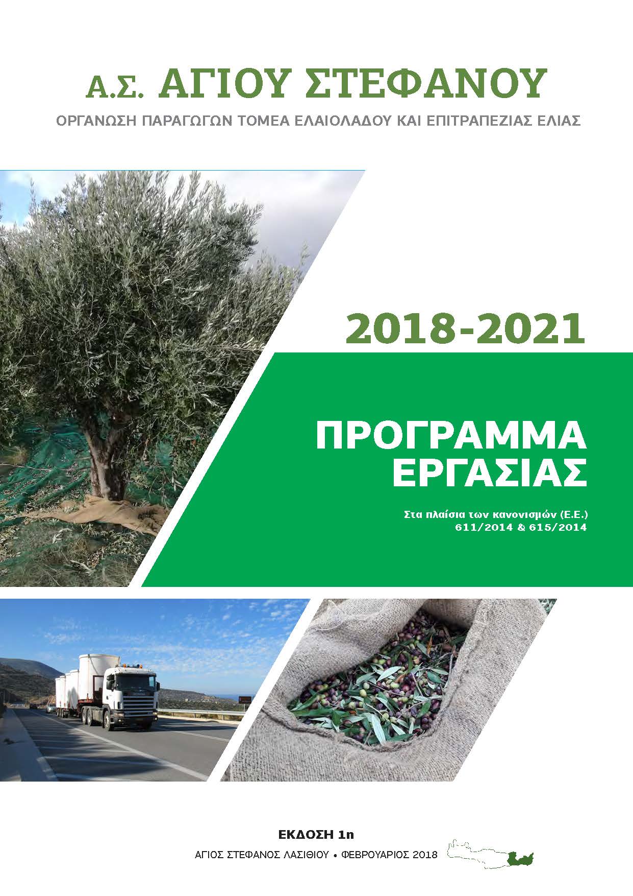 O ΑΓΡΟΤΙΚΟΣ ΕΛΑΙΟΚΟΜΙΚΟΣ ΣΥΝΕΤΑΙΡΙΣΜΟΣ ΑΓΙΟΥ ΣΤΕΦΑΝΟΥ ως επίσημα αναγνωρισμένη Οργάνωση Παραγωγών στον Τομέα Ελαιόλαδου υλοποιεί για την περίοδο 2018-2021 πρόγραμμα εργασίας ΟΕΦ στο πλαίσιο των Καν. (ΕΕ) 611/2014 και 615/2014